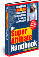 Everyday hundreds of thousands of affiliates make money promoting their affiliated merchants products online. Thousands of folks like you have been able to quit their jobs simply by promoting other people's products. "The Super Affiliate Handbook" will teach you in exact detail all you need to know to make a living using your computer, the Internet and affiliate programs. Click here for more information.